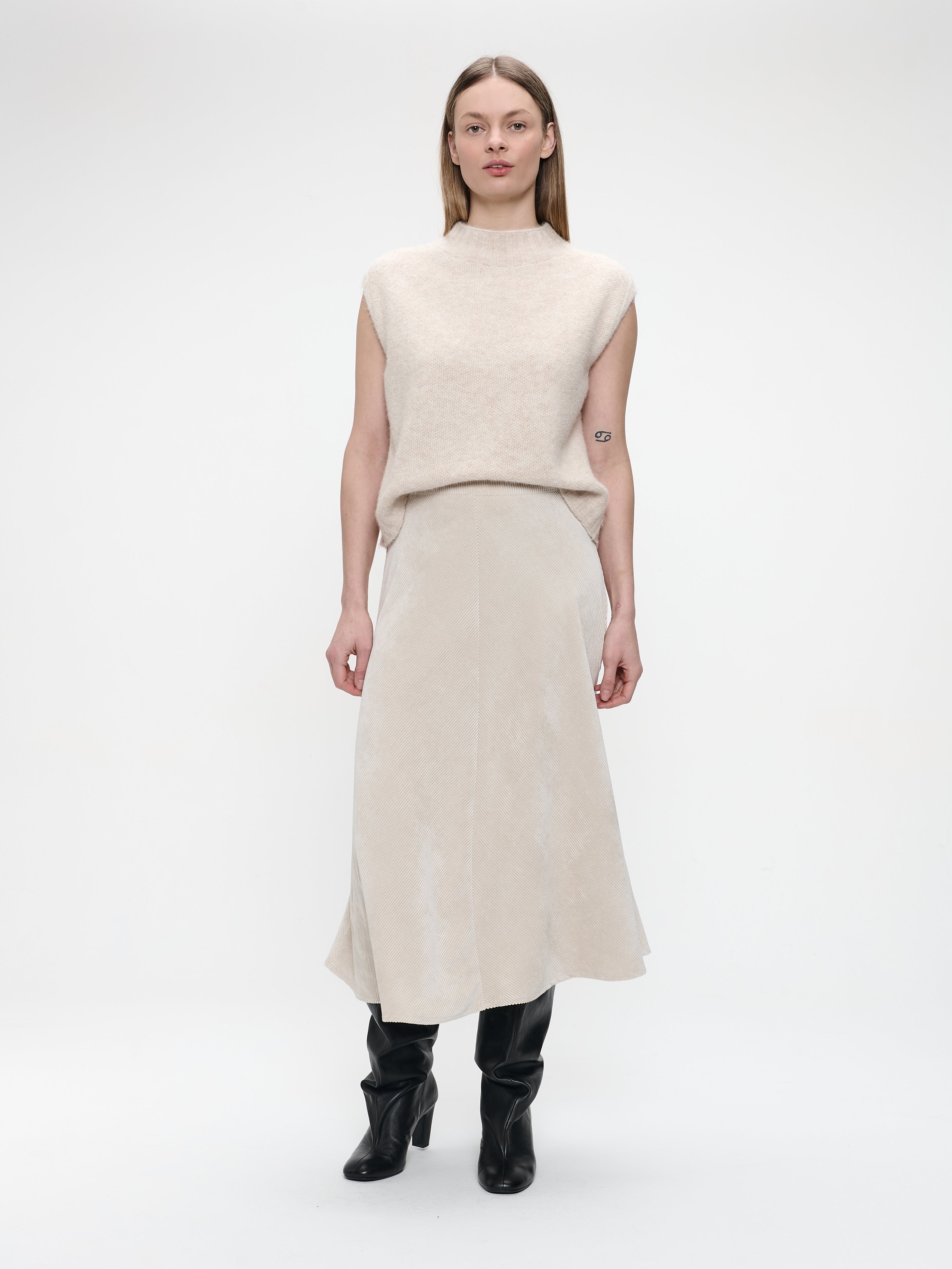 Alpaca Vest H24179 is the perfect layering piece for transitional weather. Crafted from a luxurious alpaca blend, this sleeveless knit offers softness and structure in equal measure. The high neckline and relaxed fit make it ideal over shirts, dresses, or lightweight tops for a refined and comfortable look.