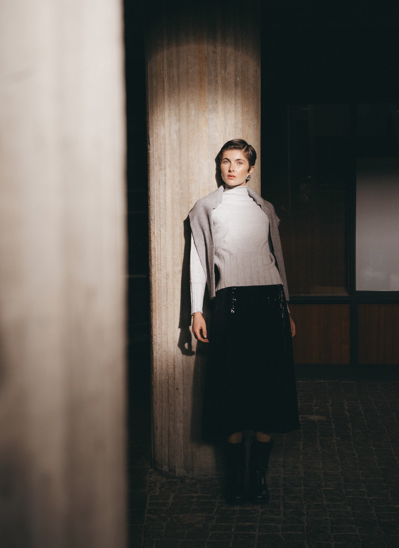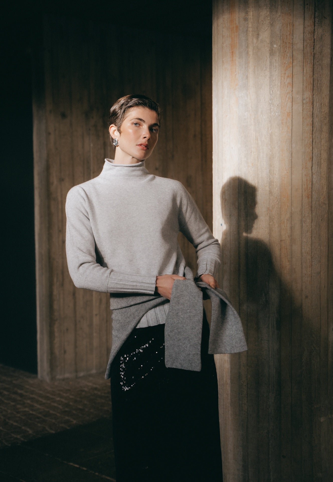 Elevate your knitwear game with the Pullover seamless25578 – a minimalist yet luxurious staple crafted from a premium wool blend. This pullover features a seamless silhouette that offers a smooth, second-skin feel, while the soft high neck adds a refined touch. Designed in a soft grey tone, it's the ideal foundation for sophisticated layering through the colder months.