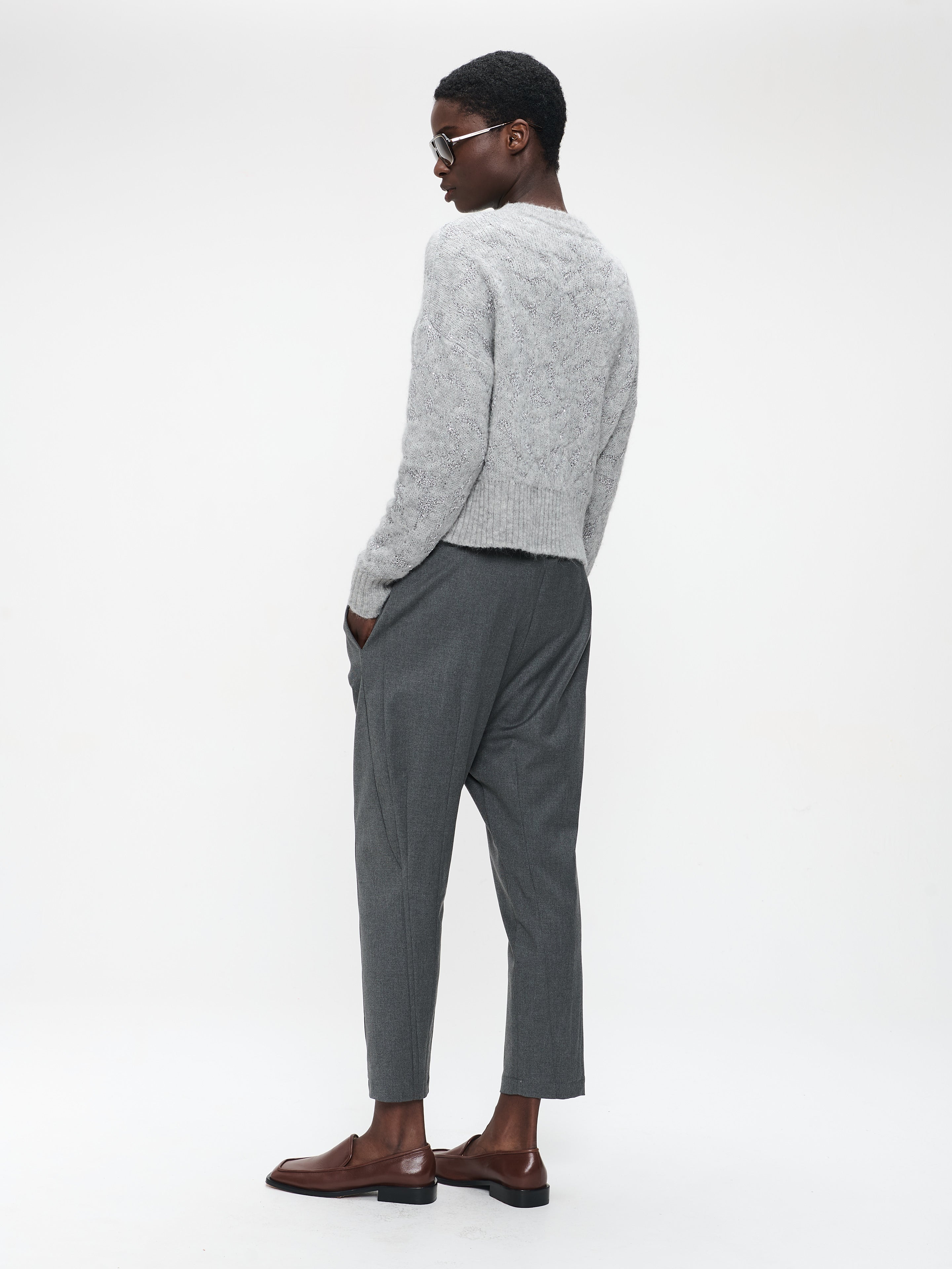 • Crafted in a refined grey melange tone