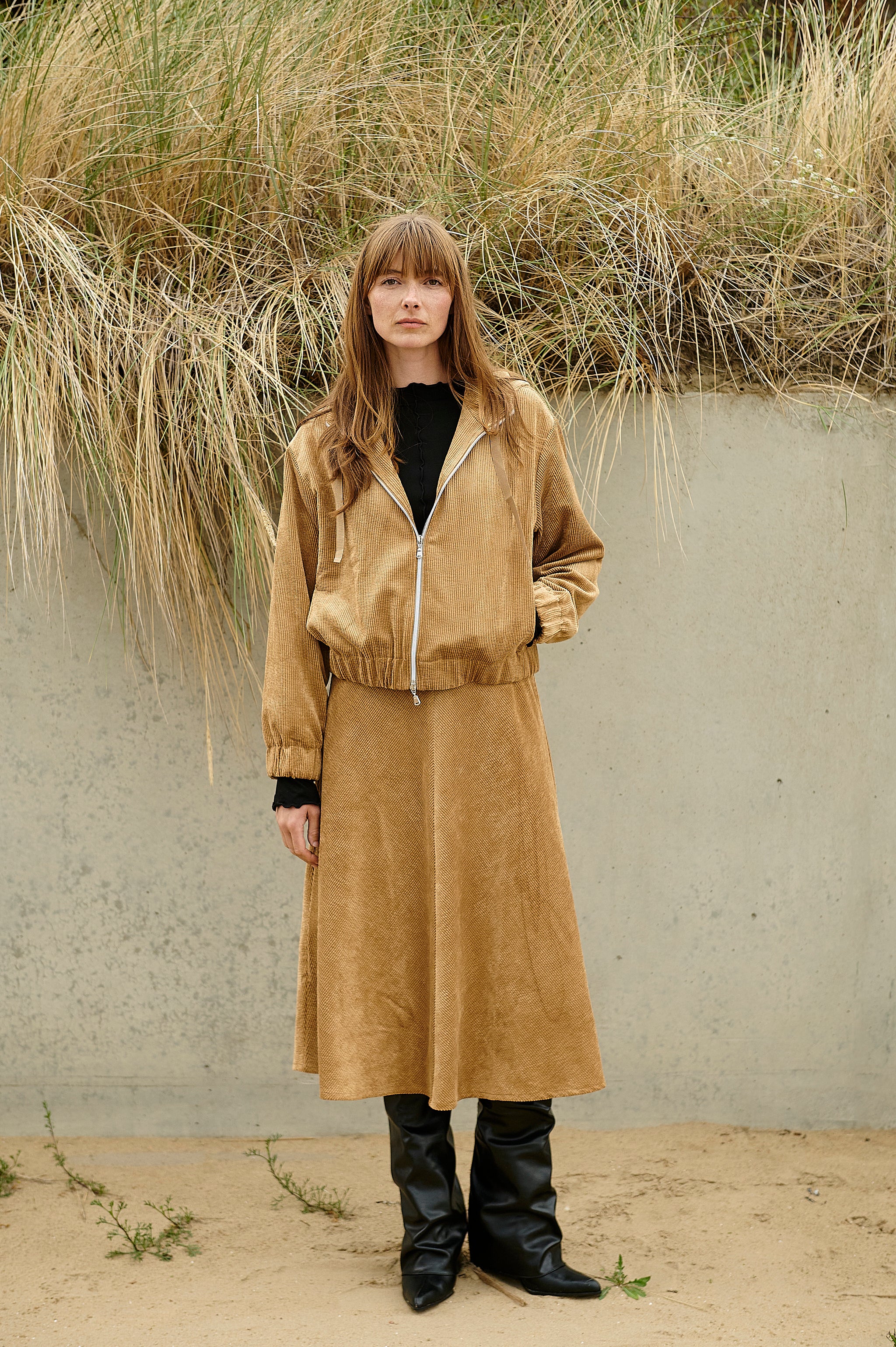 A contemporary take on denim chic — the Simba jeans skirt adds a touch of softness and elegance to classic jeanswear. With its flattering A-line silhouette, this skirt is crafted from a stretch denim blend that hugs gently without restricting movement. Designed for modern styling, it's easy to pair with knits, vests, or structured tops for everyday looks with a polished edge.