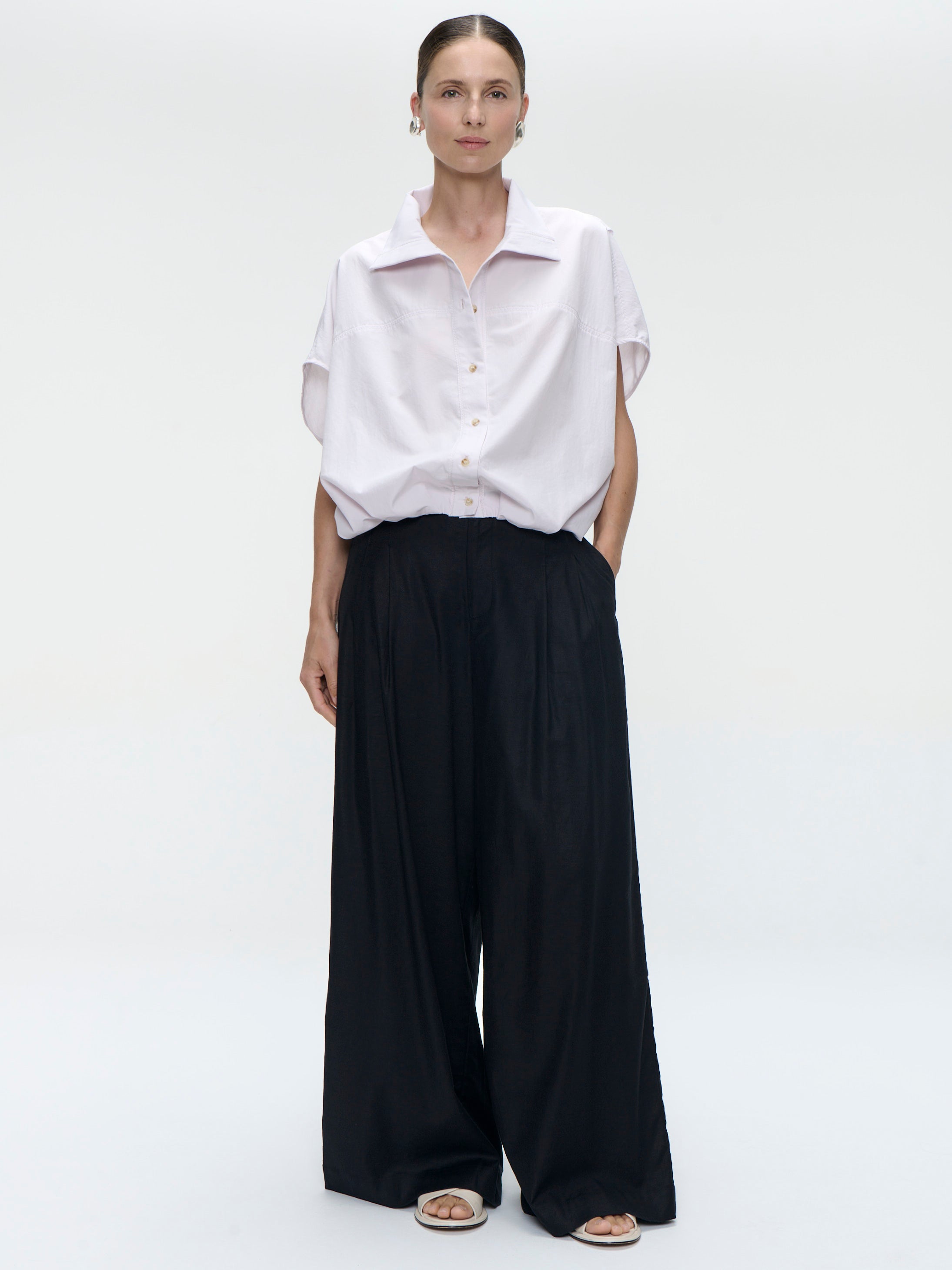 Discover the perfect blend of luxury and convenience with the Semira Blouse, crafted from high-quality satin viscose. This blouse offers an effortless wear experience, featuring a fluid, lightweight fabric that drapes beautifully for a flattering silhouette.