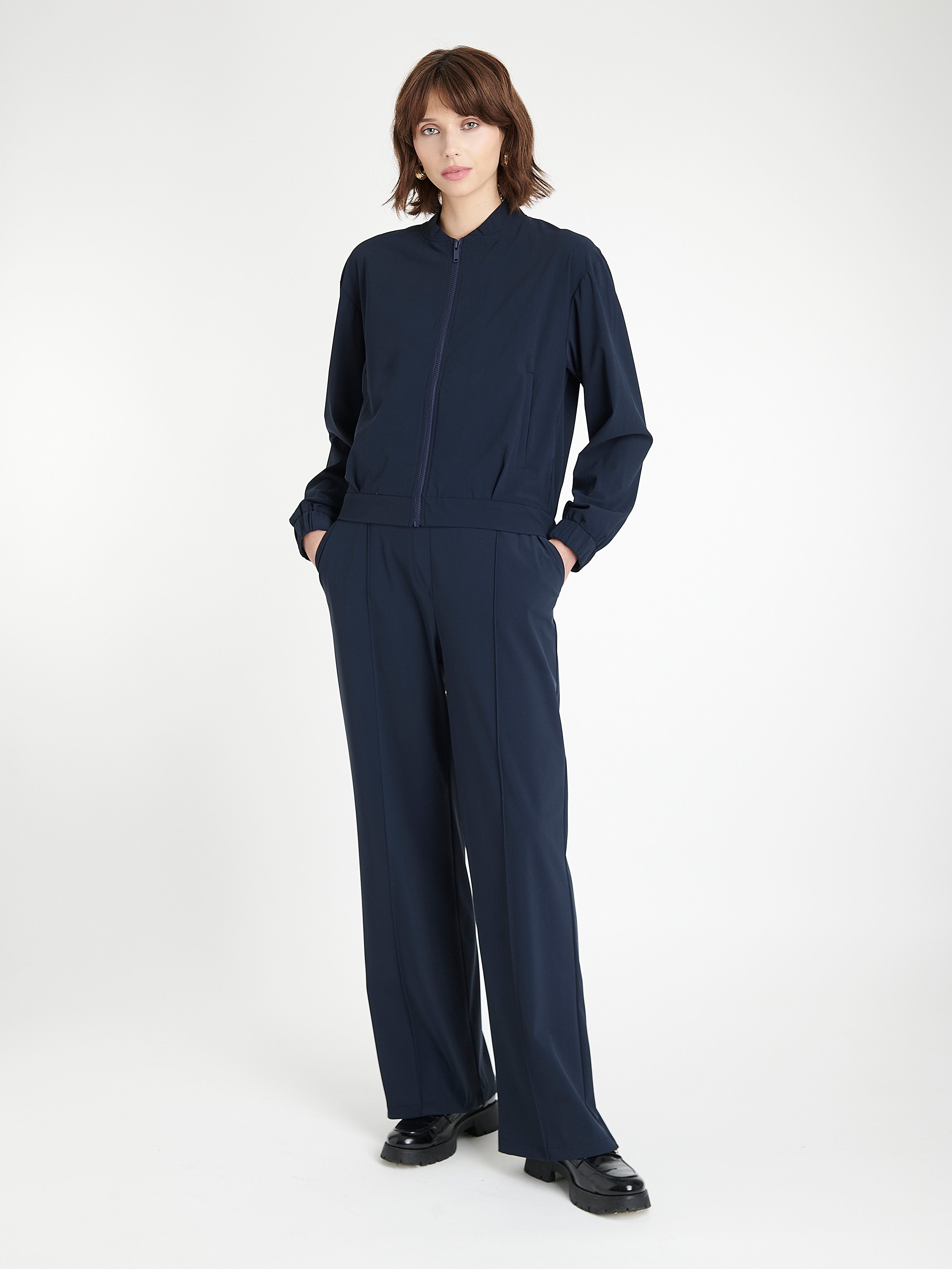 The Thera Pants offer a refined, flowy silhouette ideal for smart dressing with maximum comfort. Crafted from brushed technical jersey, they feature a soft drape with elegant front pleats and a wide-leg fit. Perfect for versatile styling, these trousers pair effortlessly with both blazers and knits for an elevated day-to-night look.