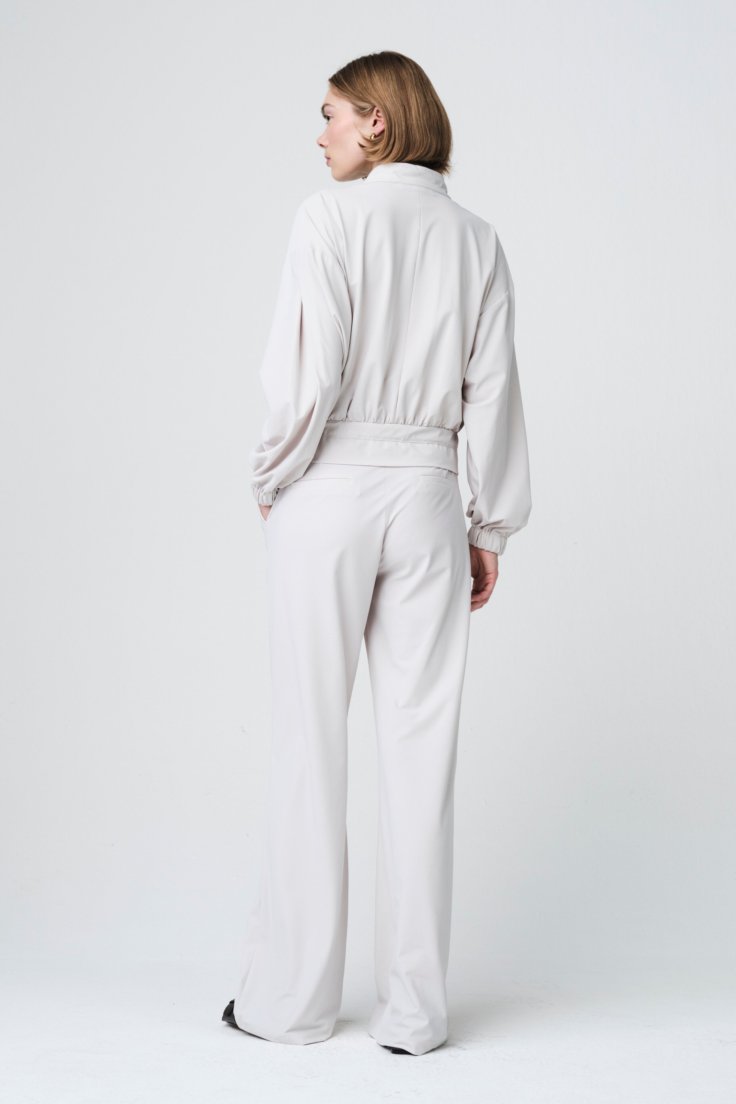 The Jolien Pants by Jane Lushka bring an elevated sense of comfort to everyday dressing. Crafted from our signature technical jersey, they offer a soft drape, relaxed silhouette, and effortless movement. The elasticated waistband and straight wide leg make them perfect for pairing with casual tops, blazers, or matching technical pieces for a coordinated look.