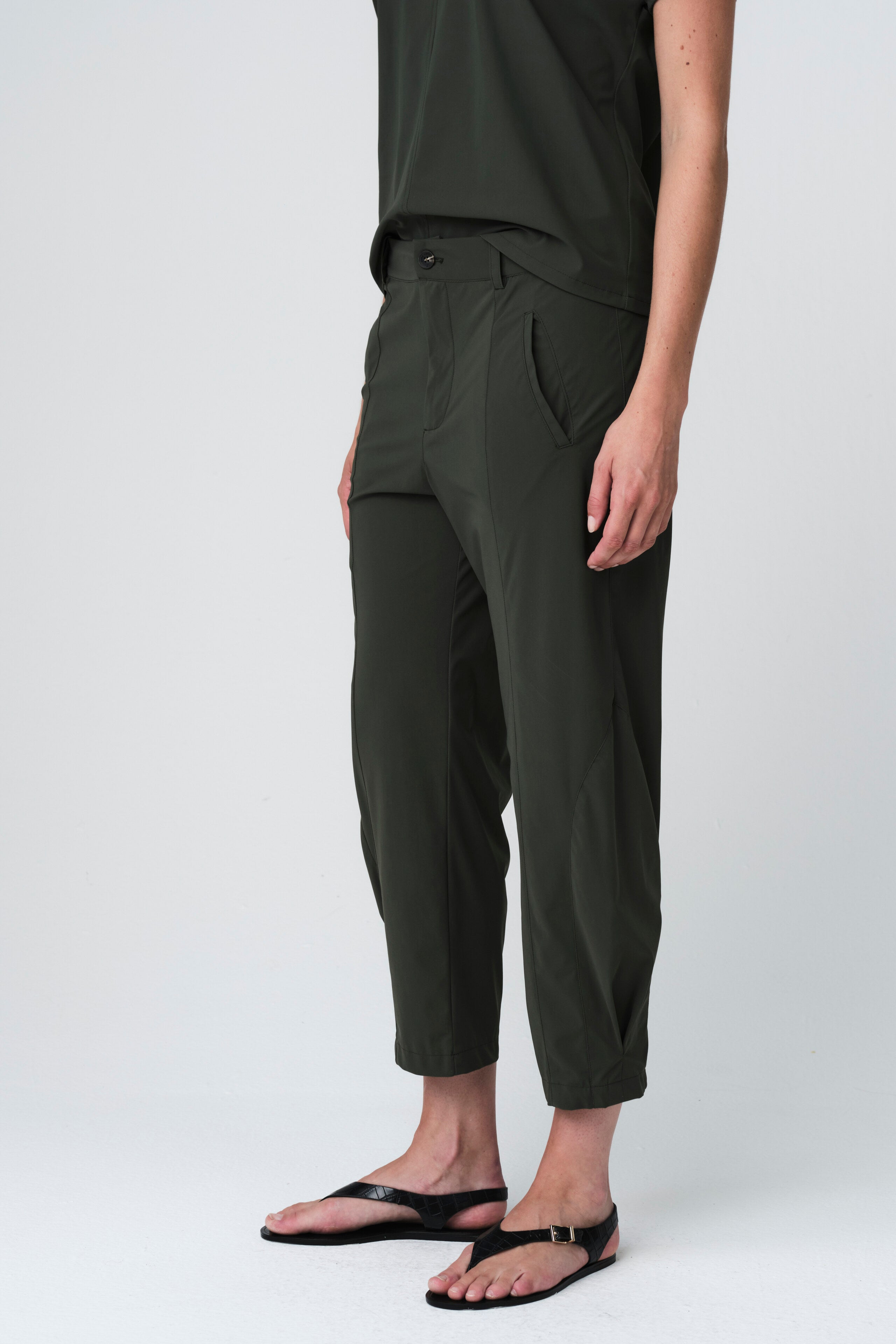 The Corien Pants blend contemporary simplicity with signature Jane Lushka comfort. Crafted from technical stretch jersey, they offer a soft touch, breathable feel, and elegant drape. Featuring a relaxed, cropped silhouette with a comfortable elastic waistband and side pockets, these trousers are perfect for versatile, everyday styling. Pair them with the matching top for a coordinated modern look.