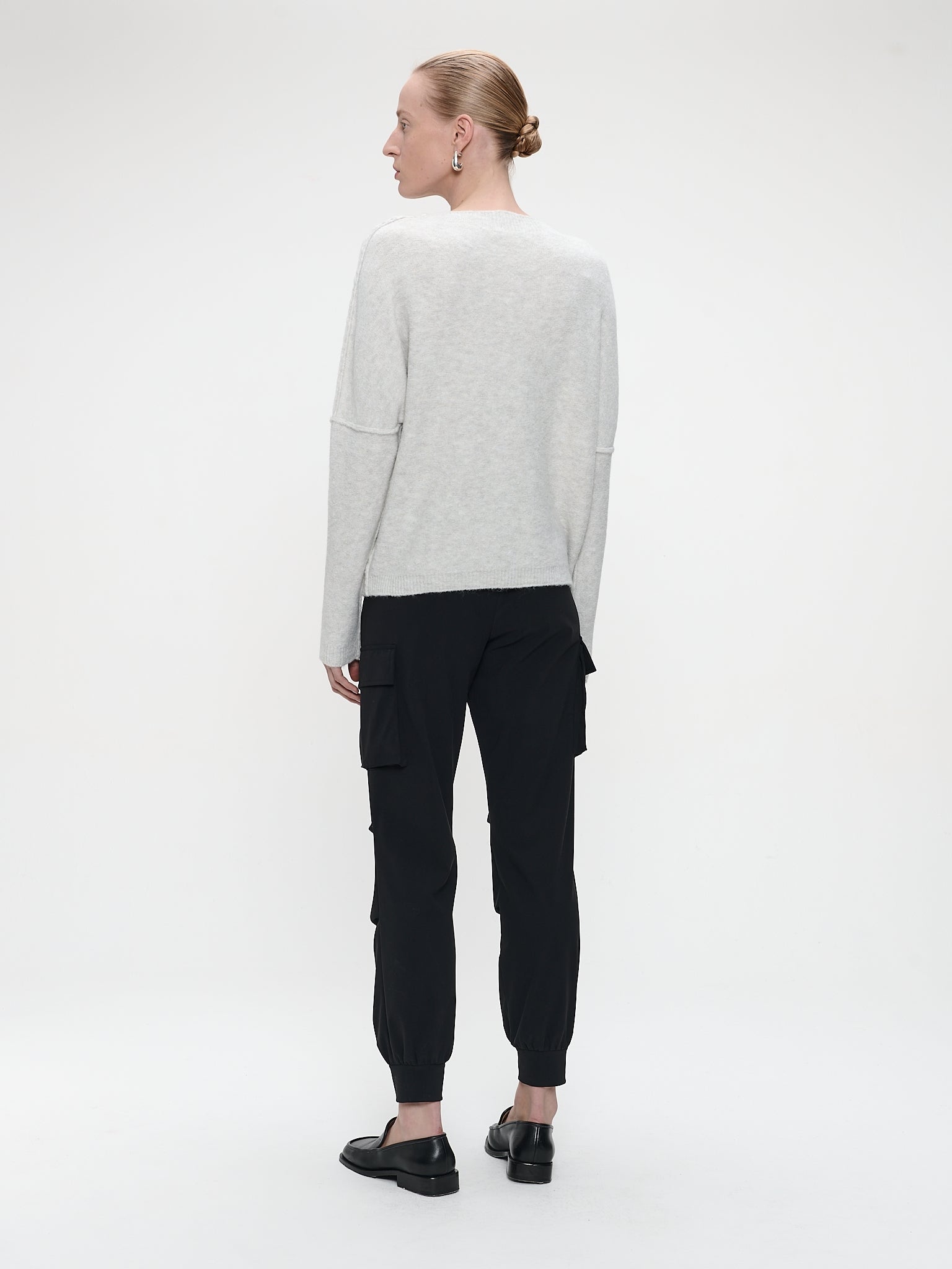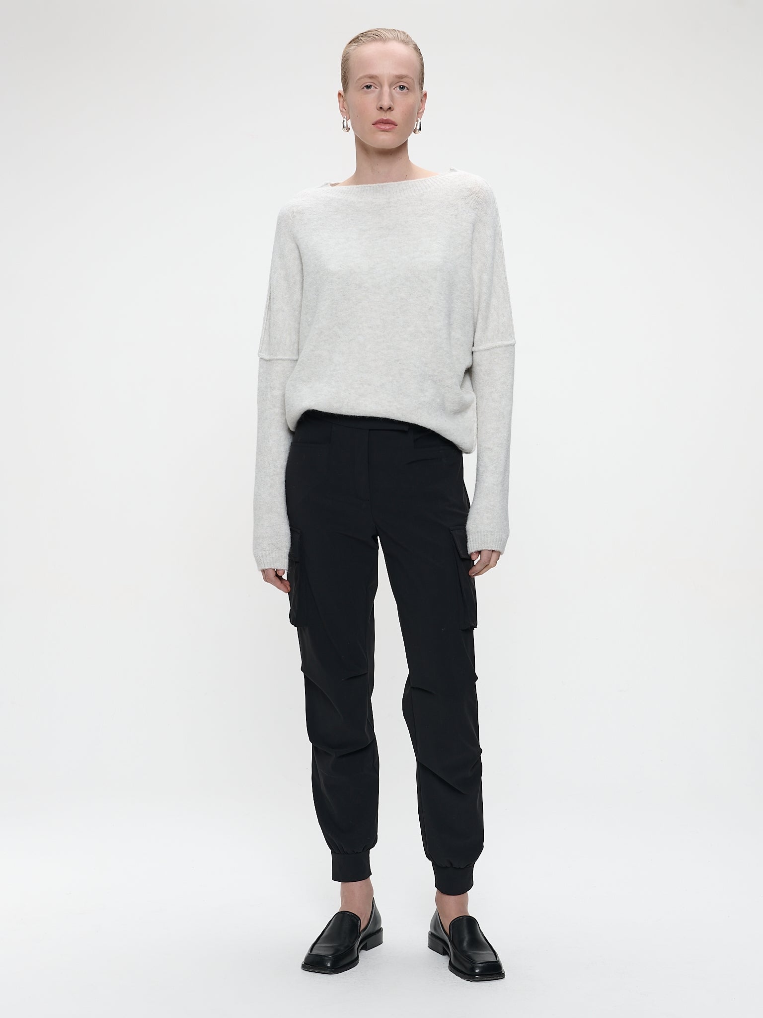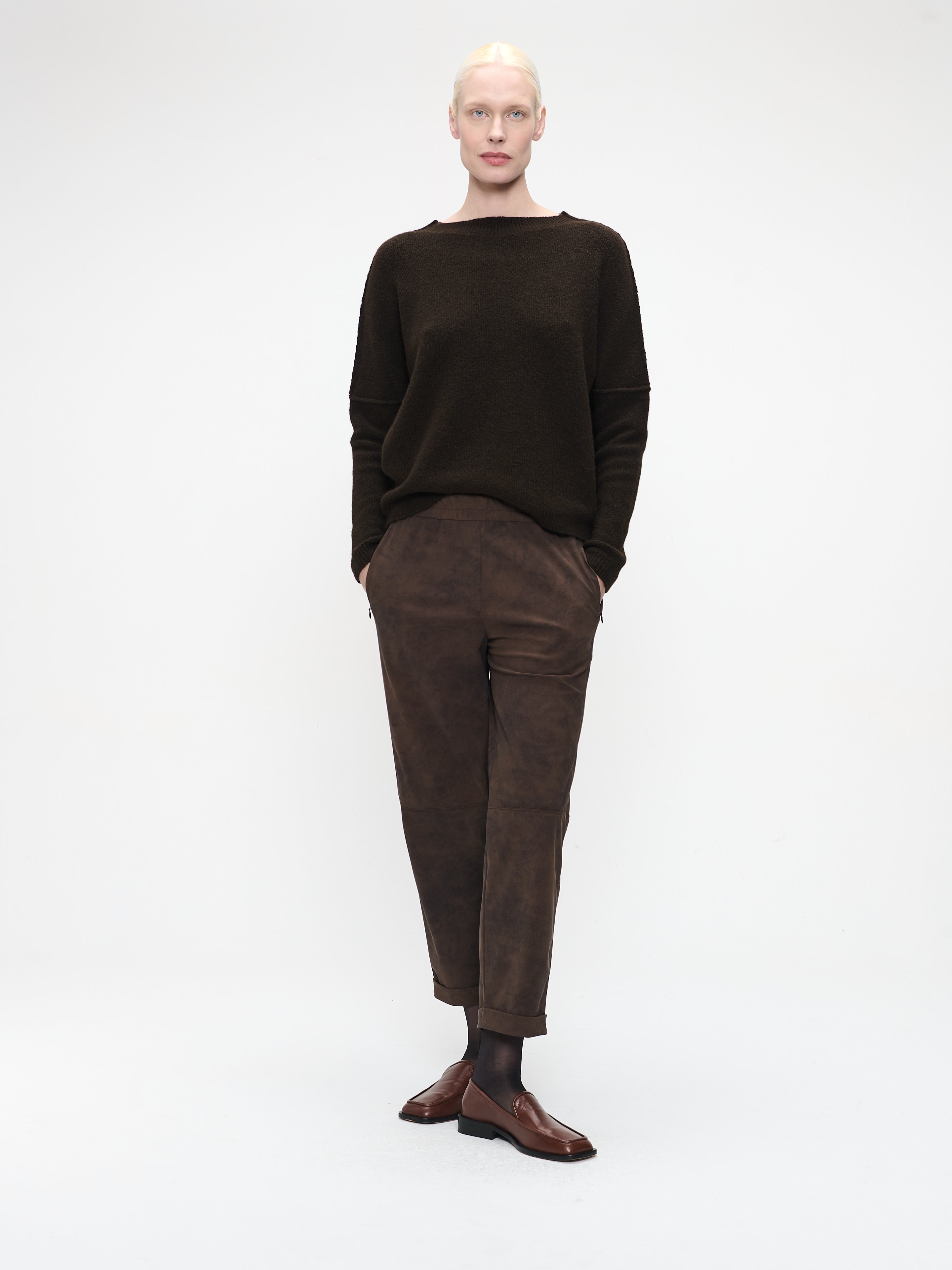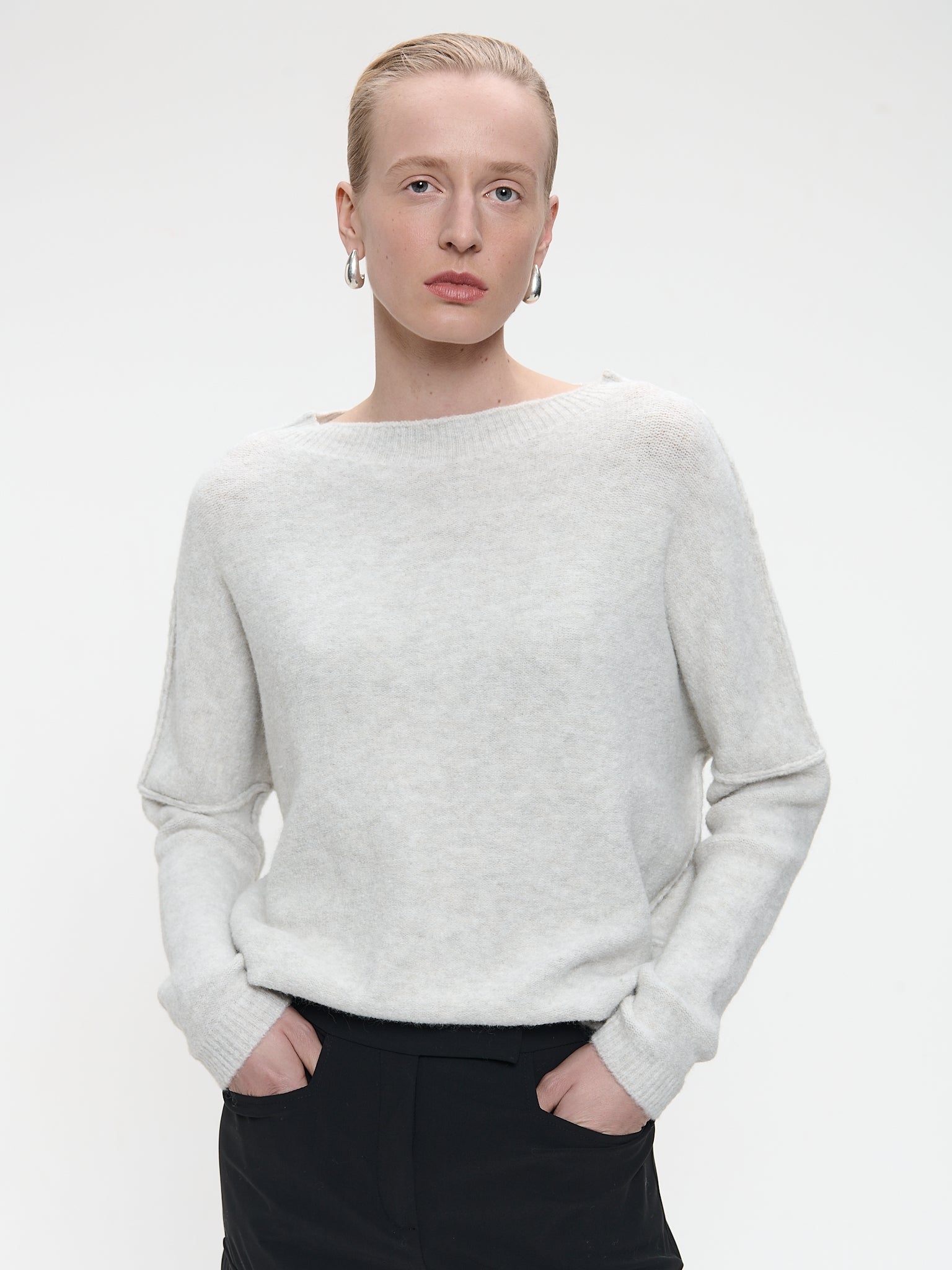 Make a statement this season with the H25171 pullover – soft, shiny, and carefully crafted. Designed with a unique knitted pattern and a subtle shimmer, this piece brings a touch of elegance to your autumn/winter wardrobe. The blend of alpaca, wool, and synthetic fibers ensures warmth and comfort, while the relaxed fit makes it easy to style with trousers, skirts, or shorts.