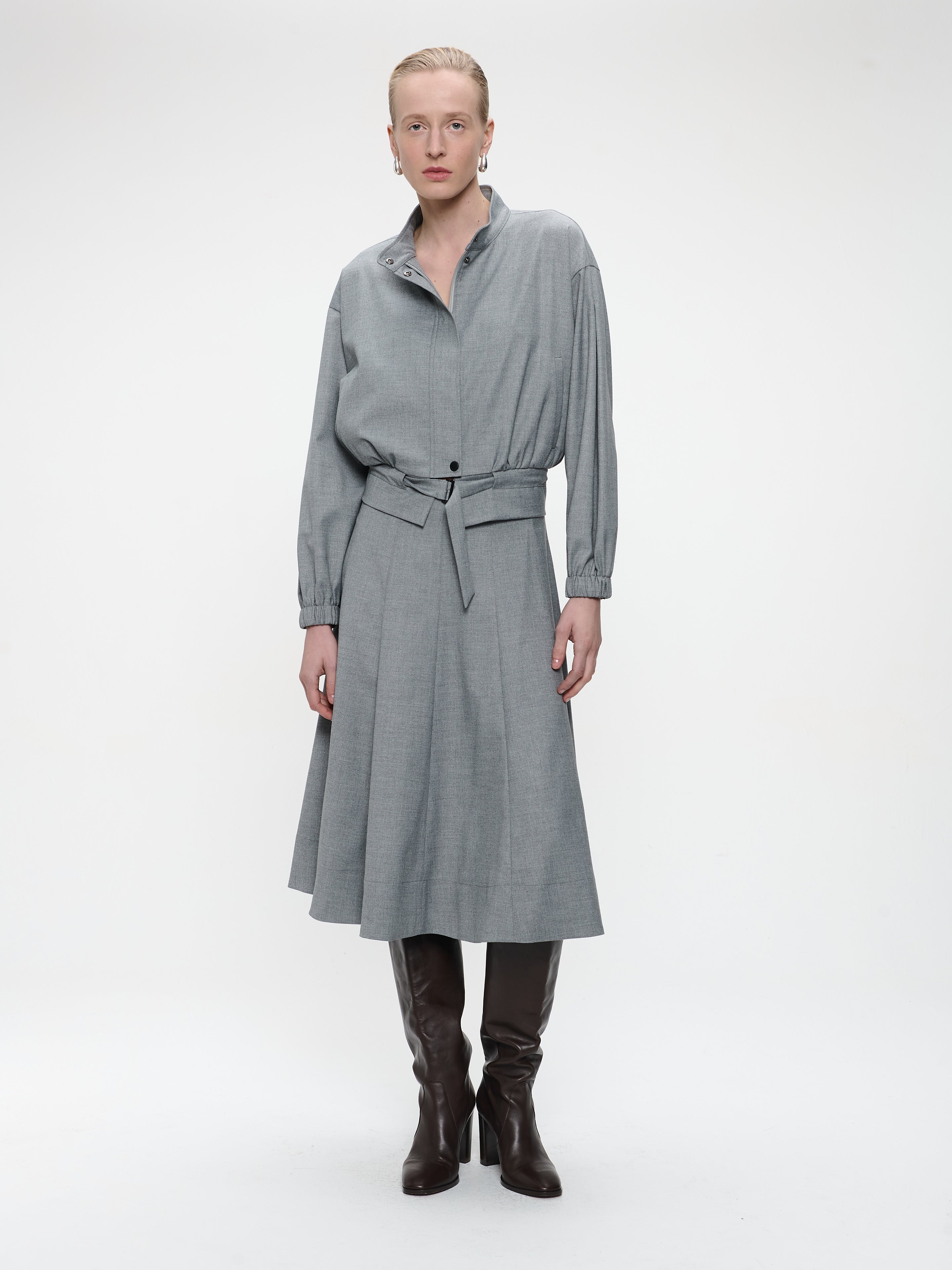 Combining sharp tailoring with feminine elegance, the Hella Dress reimagines the classic blazer silhouette into a bold, structured piece. Crafted from technical jersey, it features a double-breasted front and contrasting white cuffs that enhance its refined aesthetic. The slightly flared hemline adds movement and softens the structured look — ideal for both boardroom confidence and evening sophistication.