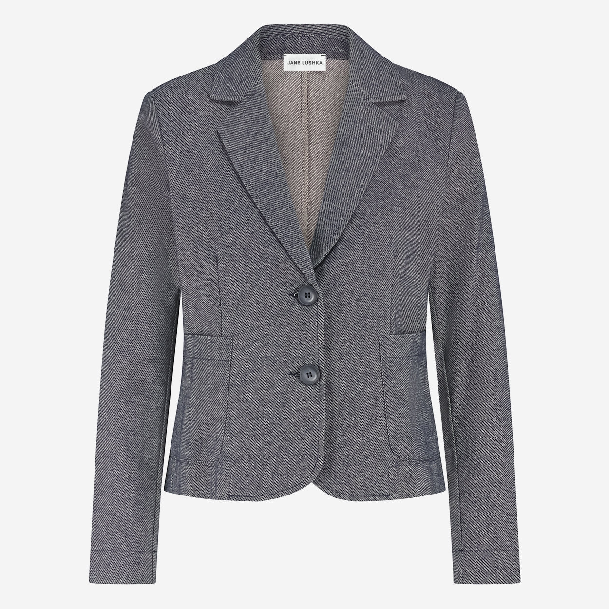 This modern blazer blends classic tailoring with a relaxed silhouette for effortless sophistication. Crafted from a cotton-polyester mix, it features a slightly cropped length, double-button closure, and clean lapels that enhance its versatile appeal. The soft blue hue adds understated elegance, making it a perfect match for both tailored trousers and casual looks.