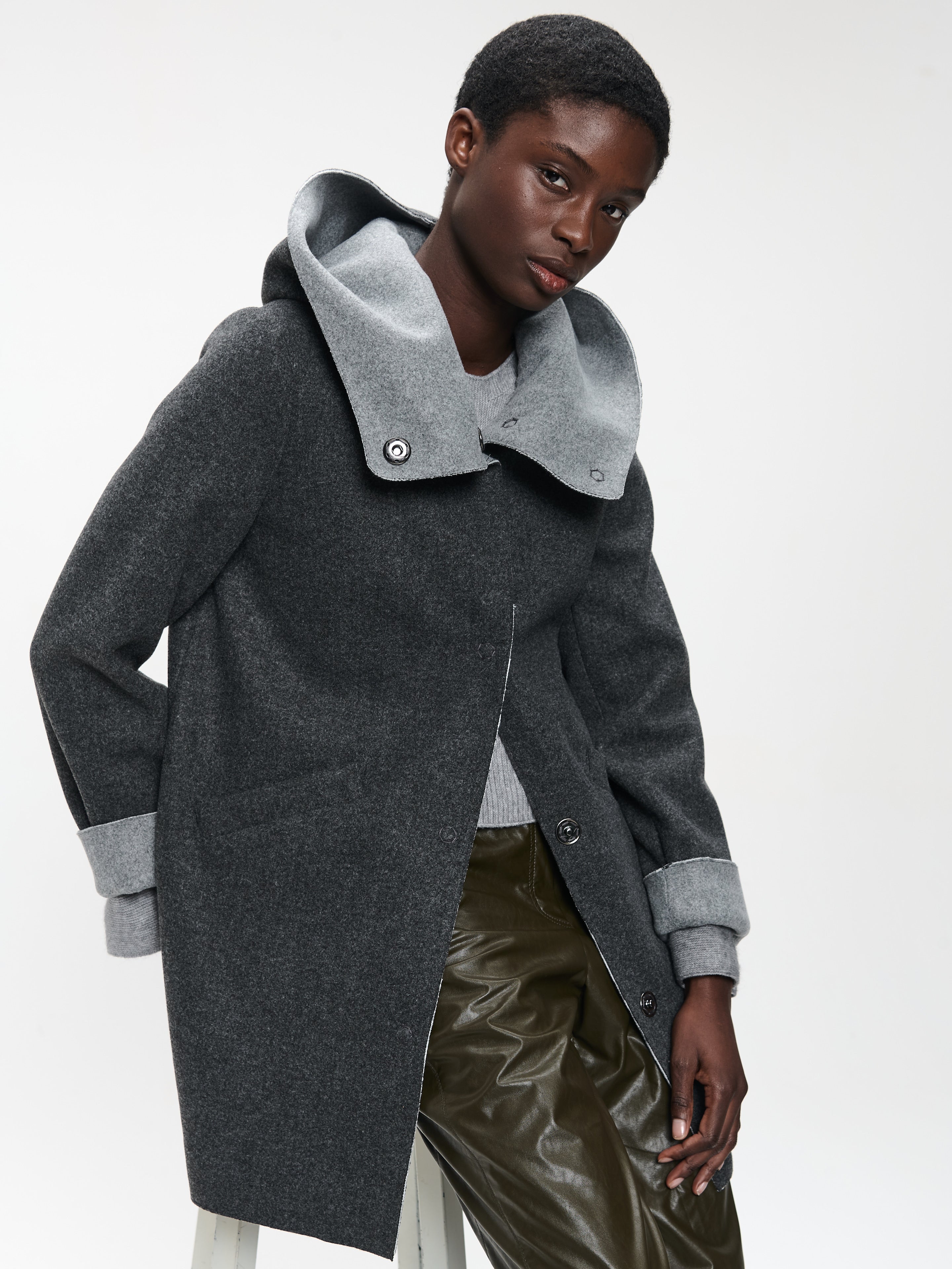 This warm and cozy winter jacket from Jane Lushka offers a stylish balance between comfort and function. Crafted from 100% polyester with a soft finish, the Irlanda hoody is designed with a relaxed silhouette, drop shoulders, a wide hood, and visible seams for a laid-back, urban look. The contrasting inner hood lining and cuffed sleeves add an element of texture and detail, making it ideal for layering over your everyday essentials.