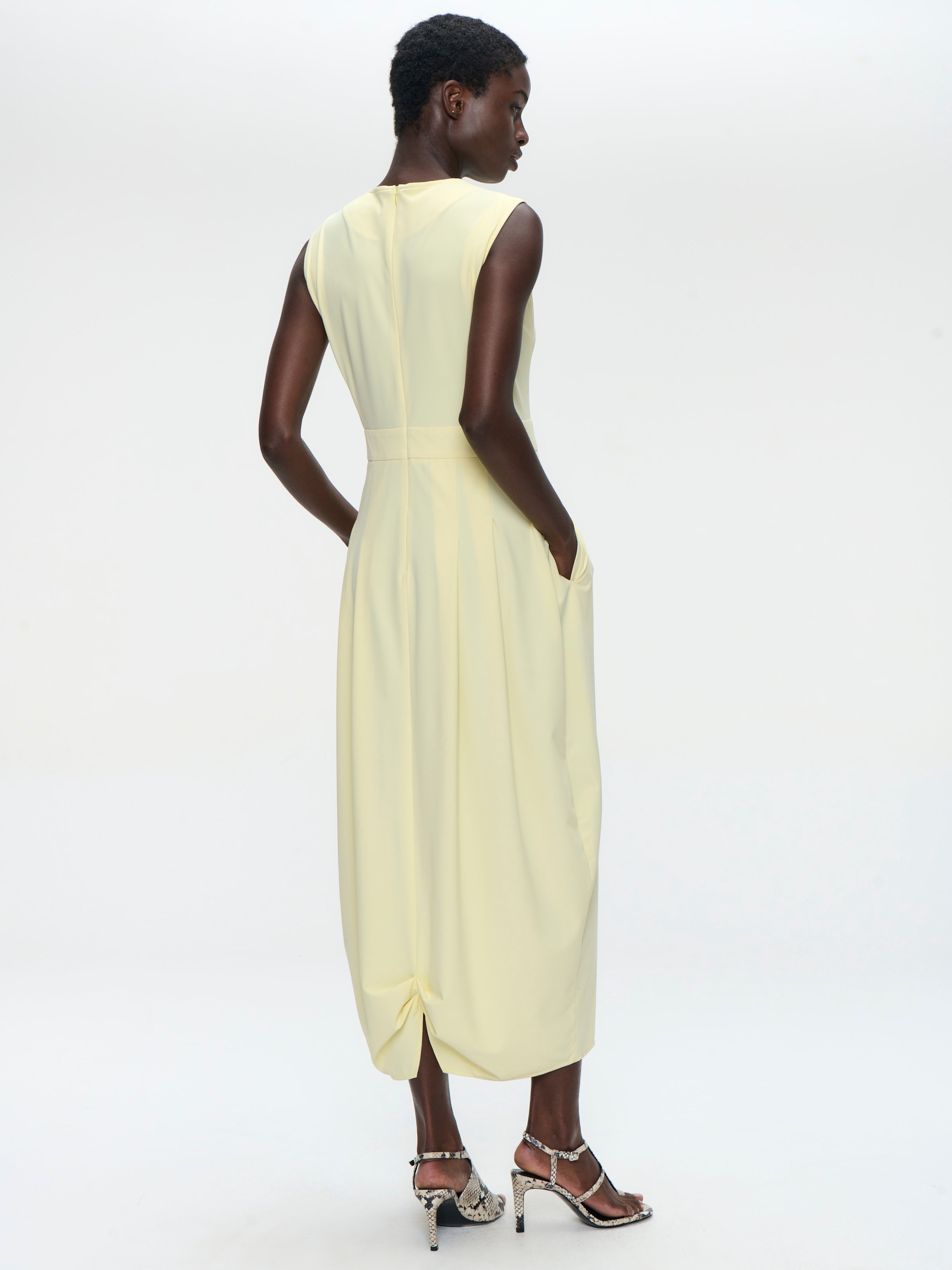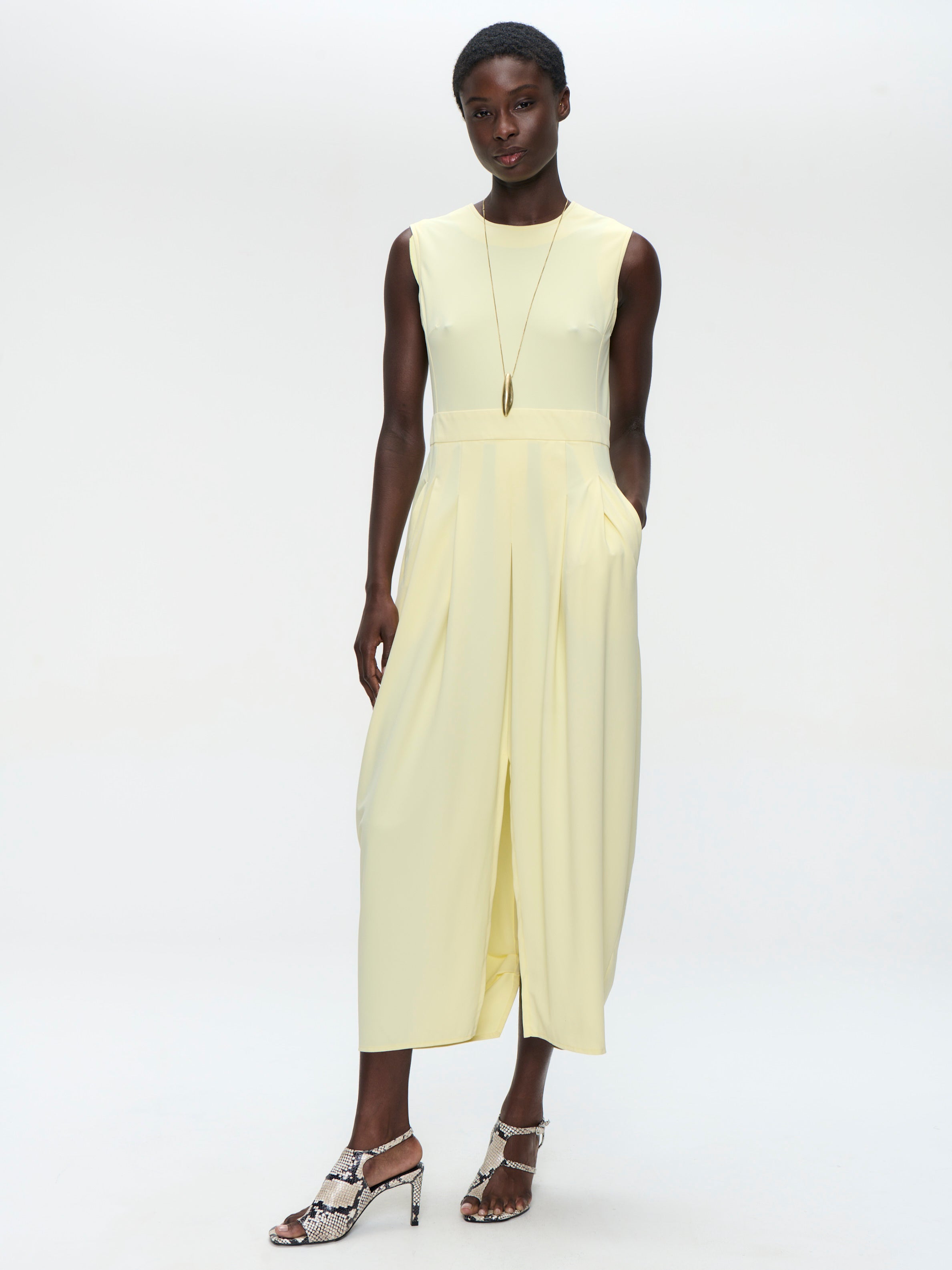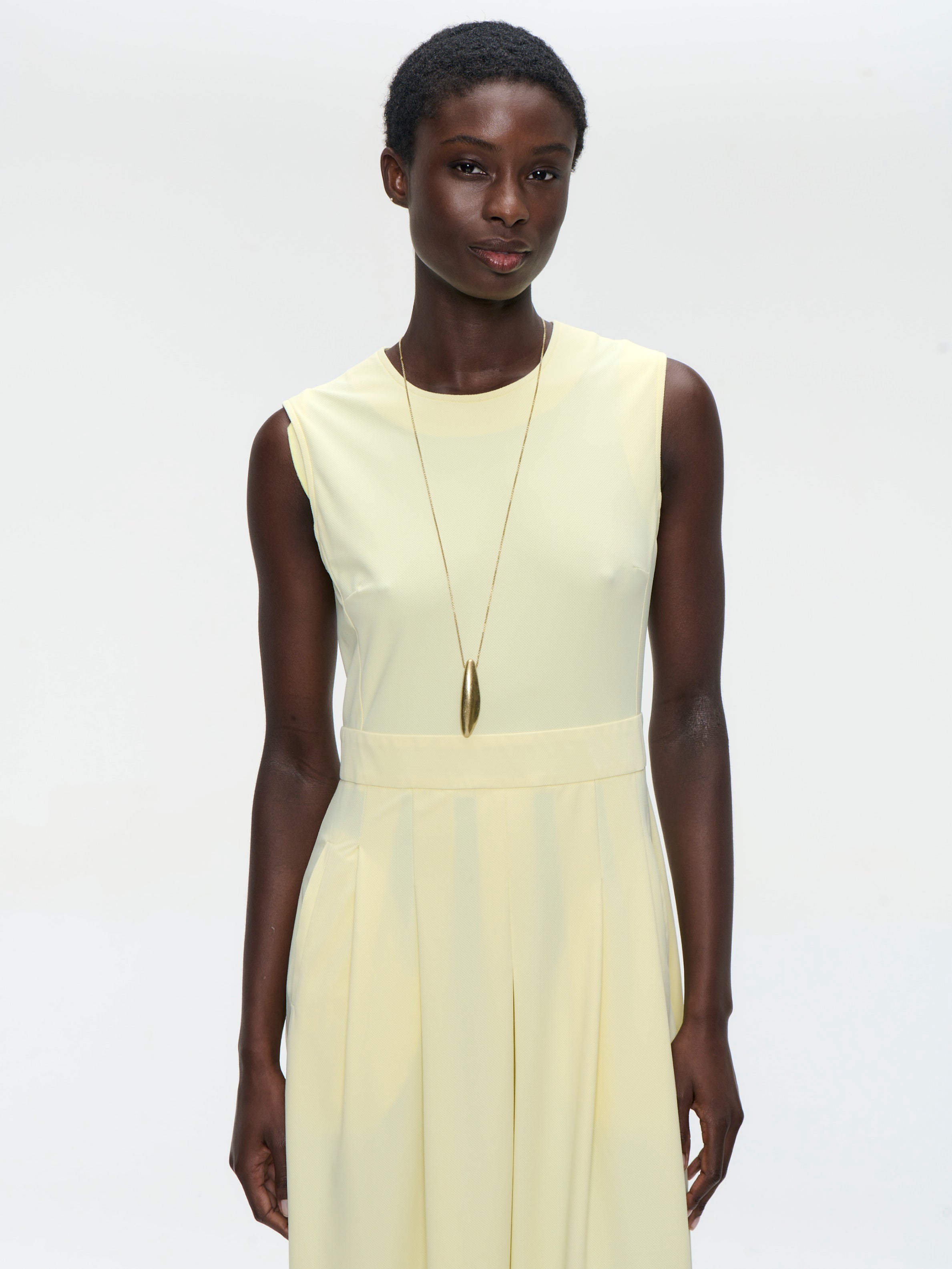 The Jackie Dress by Jane Lushka blends minimalism with modern elegance. Crafted in Europe from smooth, stretchable technical jersey, this sleeveless dress features a clean round neckline and a relaxed, softly draped silhouette. The subtle front pleat and fluid midi length give the piece effortless movement, while the straight cut keeps it timeless and versatile — perfect for both everyday wear and elevated styling.