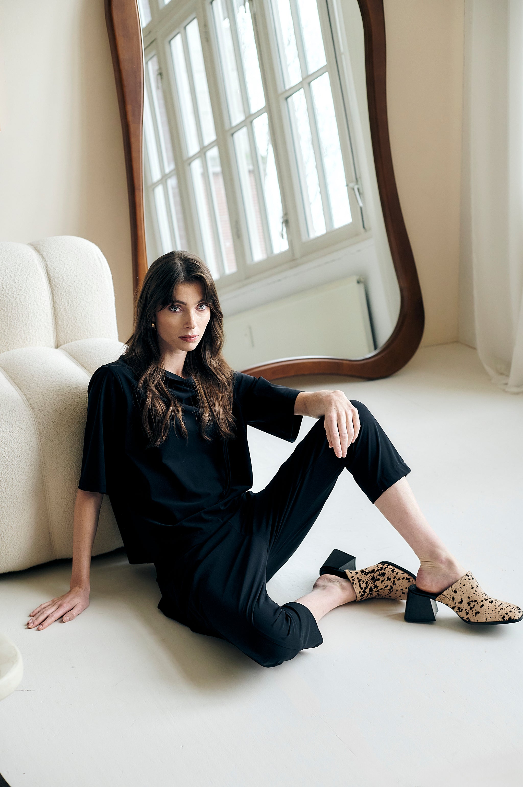 The Jamaica Top Technical Jersey by Jane Lushka is a contemporary twist on casual elegance. Made in Italy from soft technical stretch jersey, this relaxed-fit top features a distinctive high neckline with a drawstring detail, adding a touch of sporty sophistication. With its half sleeves and clean lines, it’s the perfect choice for effortless everyday styling that feels both polished and comfortable.