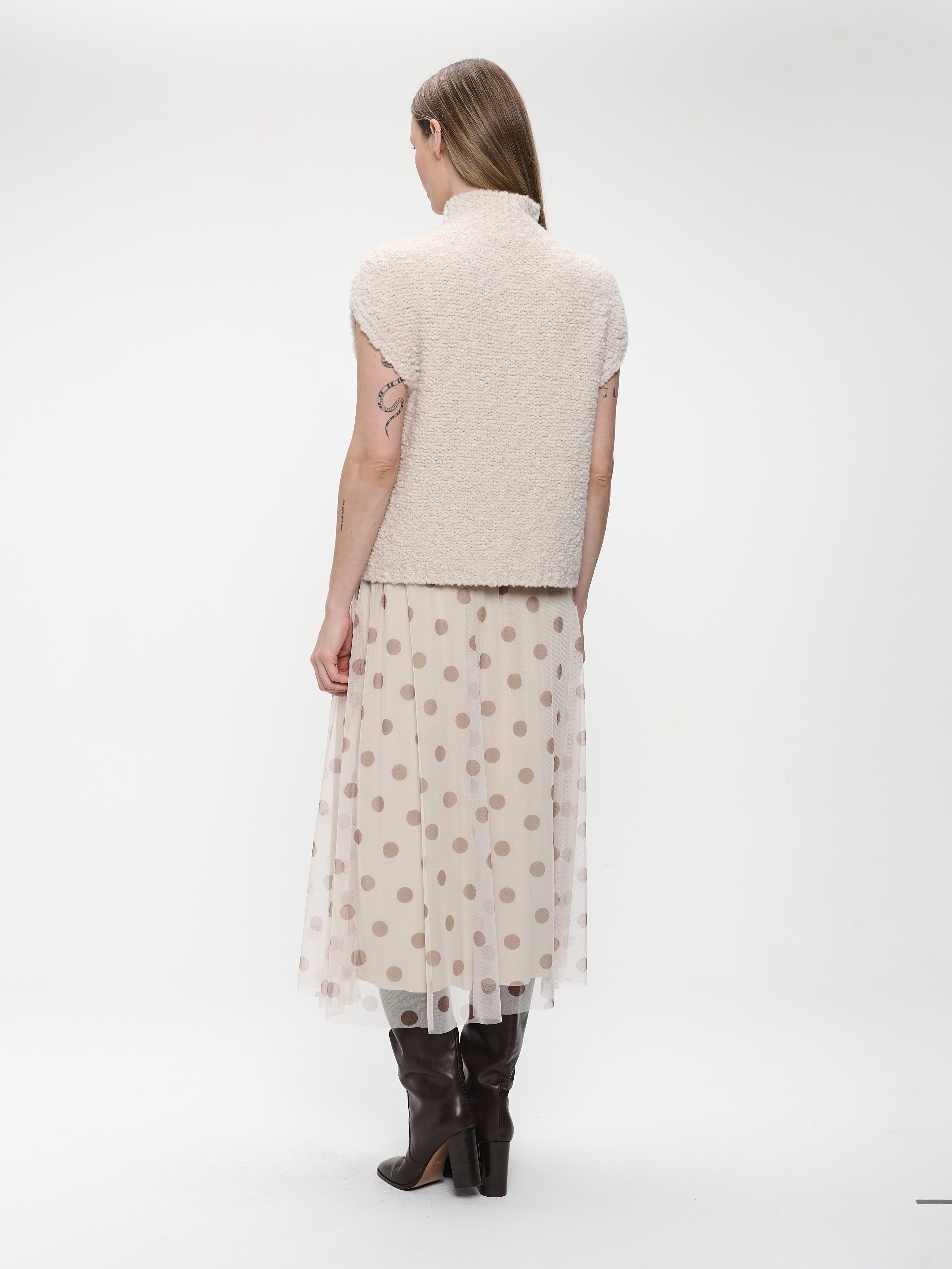This statement piece brings a playful yet sophisticated twist to your winter wardrobe. The Skirt 2425188 stands out with its delicate polka dot mesh overlay, creating a soft and feminine silhouette that’s both flattering and fashion-forward. The comfortable fit and eye-catching texture make it ideal for a wide range of styling options — from cozy knits to structured tops.